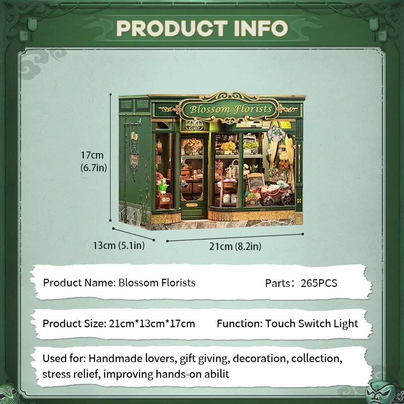 Objavte kúzlo mini sveta s CUTEBEE DIY minisadou modelu Malebné květinárstvo. Táto kreatívna stavebnica obsahuje laserom dokonale vyrezané drevené diely, drobné doplnky a osvetlenie pre realistický efekt. Všetko je prehľadne očíslované, takže stavba je jednoduchá aj bez lepidla (prípadne s troškou pre istotu). Hotový domček poslúži ako štýlová dekorácia na poličku, nočný stolík či pracovný stôl.